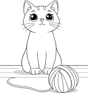 Kitty with Wool Ball Coloring Page