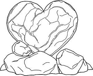 Geometric facets cover the central heart-shaped jade piece, with angular planes creating dimensional surfaces across its form. Surrounding boulders display smooth, rounded contours that contrast with the sharp crystalline faces of the heart structure. The rocky foundation beneath features irregular edges and natural cracks that ground the arrangement in an organic setting. The faceted surfaces of the heart need careful shading to show each plane's angle-try using darker greens along one edge of each facet and lighter tones on the opposite side for dimension. The smooth boulders could feature gradient blending from deep emerald to pale celadon, while the rough base might use browns and grays with hatching strokes to emphasize its textured surface. Mixing cool jade greens with warm undertones creates realistic mineral coloring throughout this crystal arrangement.