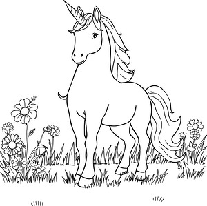 Unicorn in Flower Patch Coloring Page