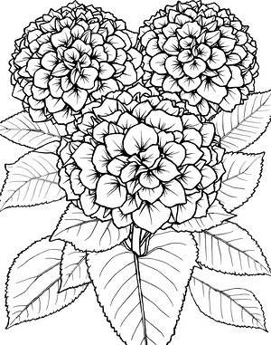 Oversized Hydrangea Clusters in Full Bloom Coloring Page