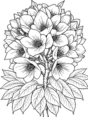 Wide Sakura Blossom Cluster Coloring Page
