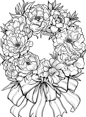 Peonies and Roses Wreath Coloring Page