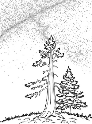Milky Way Over Pine Tree Coloring Page