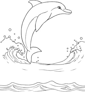 Curved bodies twist mid-leap as both dolphins rise from churning ocean waves below in this printable coloring page. Splashing water creates circular droplets that fill the surrounding space, ranging from tiny specks to larger round shapes. The waves beneath feature flowing curves and foam patterns that suggest forward motion and energy. The dolphins' smooth skin contrasts with the textured wave patterns, giving you two distinct areas to approach differently. Try grays and blues for the dolphins while keeping their bellies lighter, then shift to deeper oceanic colors for the waves-teals, navy, or turquoise would create nice depth. The scattered droplets might look striking in white gel pen over colored backgrounds or left untouched for highlights.