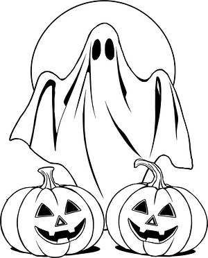 Ghost with Pumpkins Coloring Page