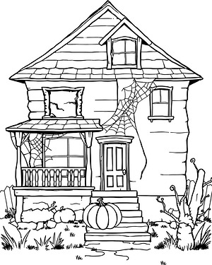 Creepy House with Pumpkin Coloring Page