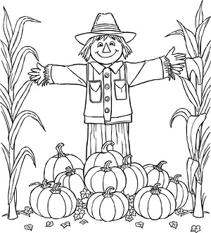 Scarecrow Among the Cornstalks Coloring Page
