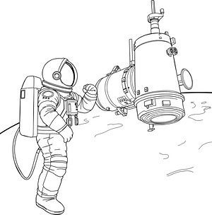 Astronaut Repairs Orbital Station Module Coloring Page